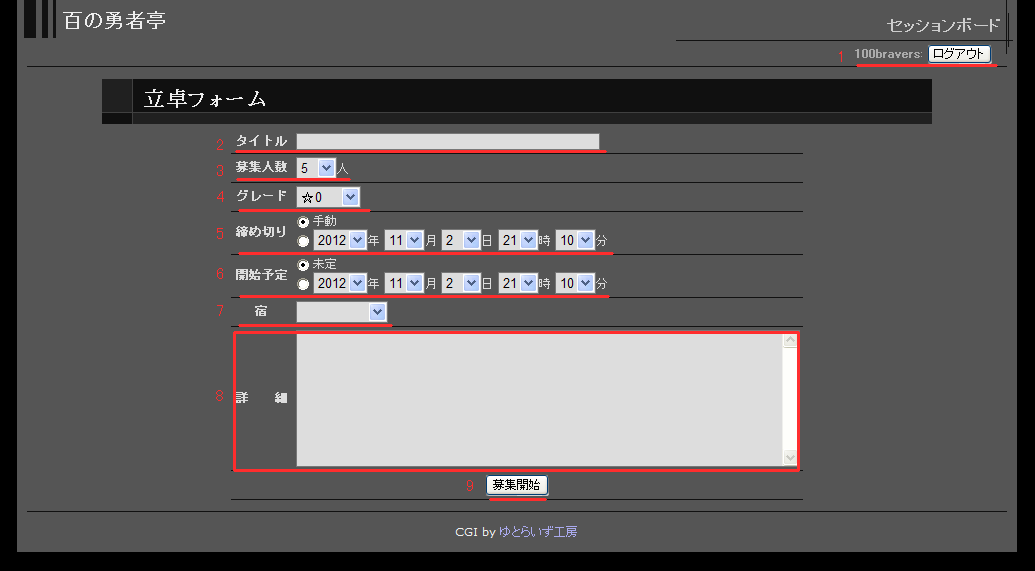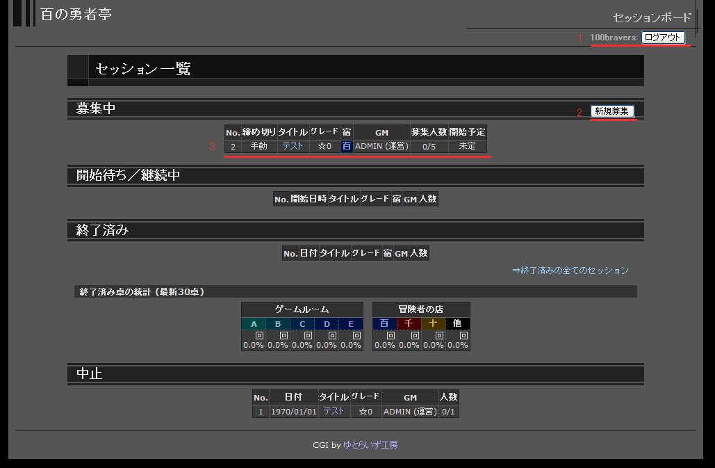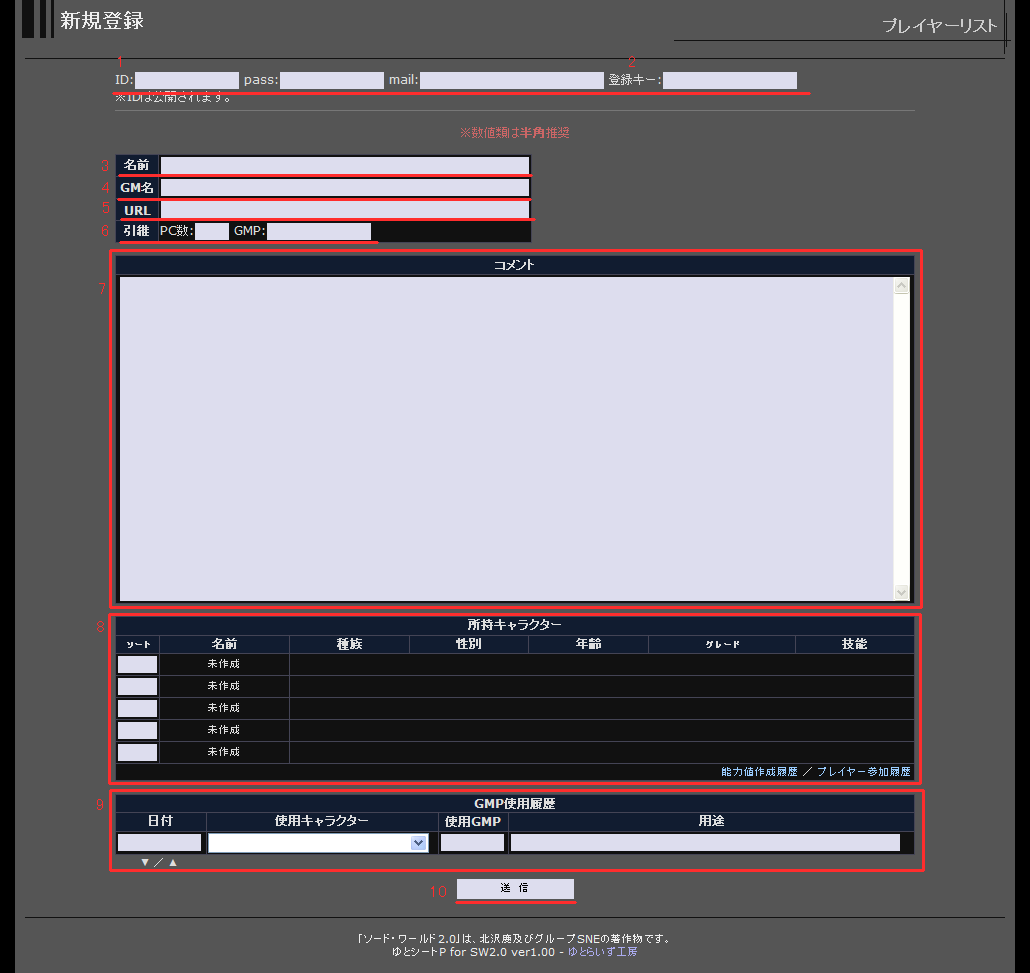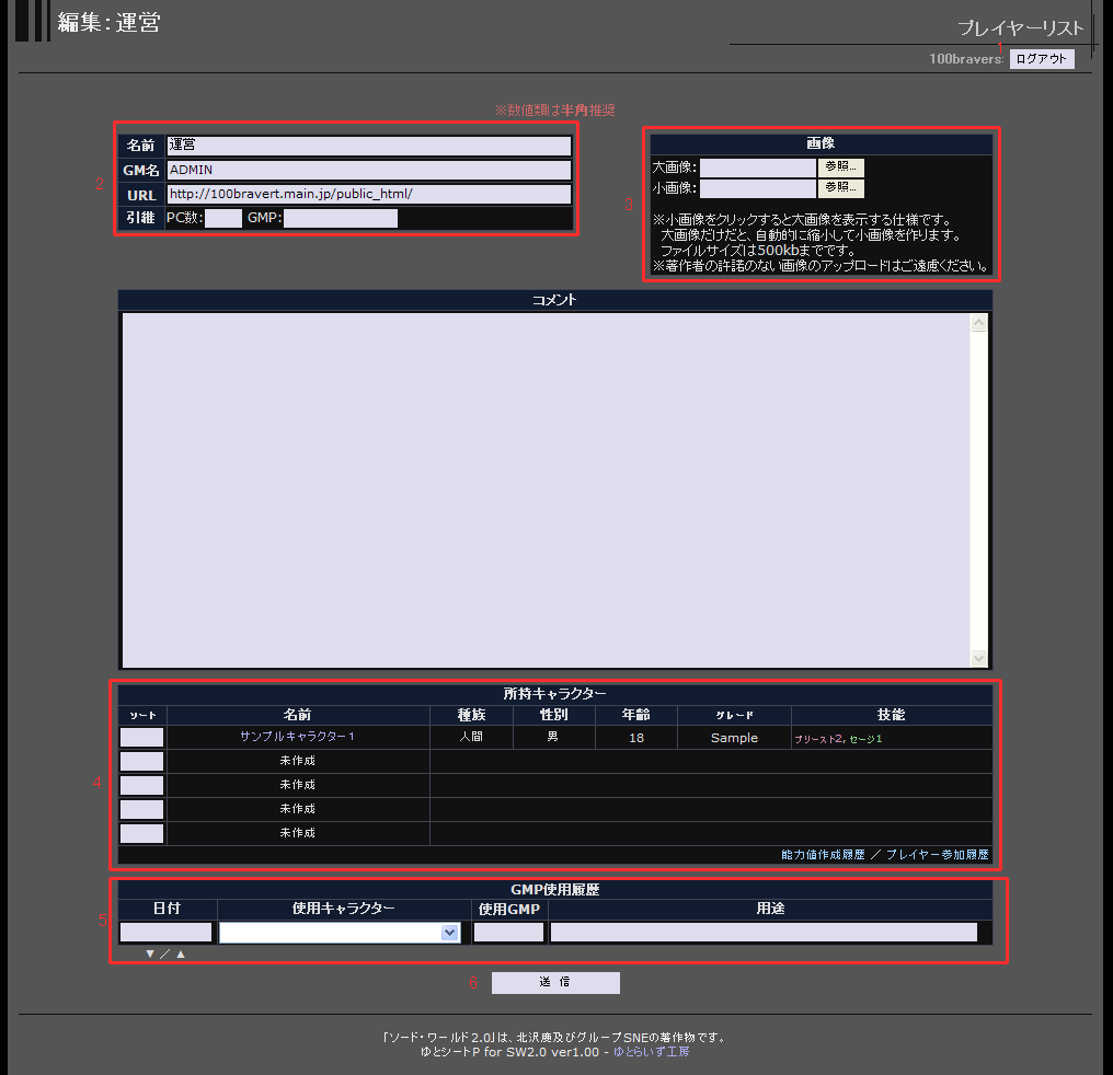 - GM名を入力してください。PL名と連携させ、わかりやすくすることをオススメします。