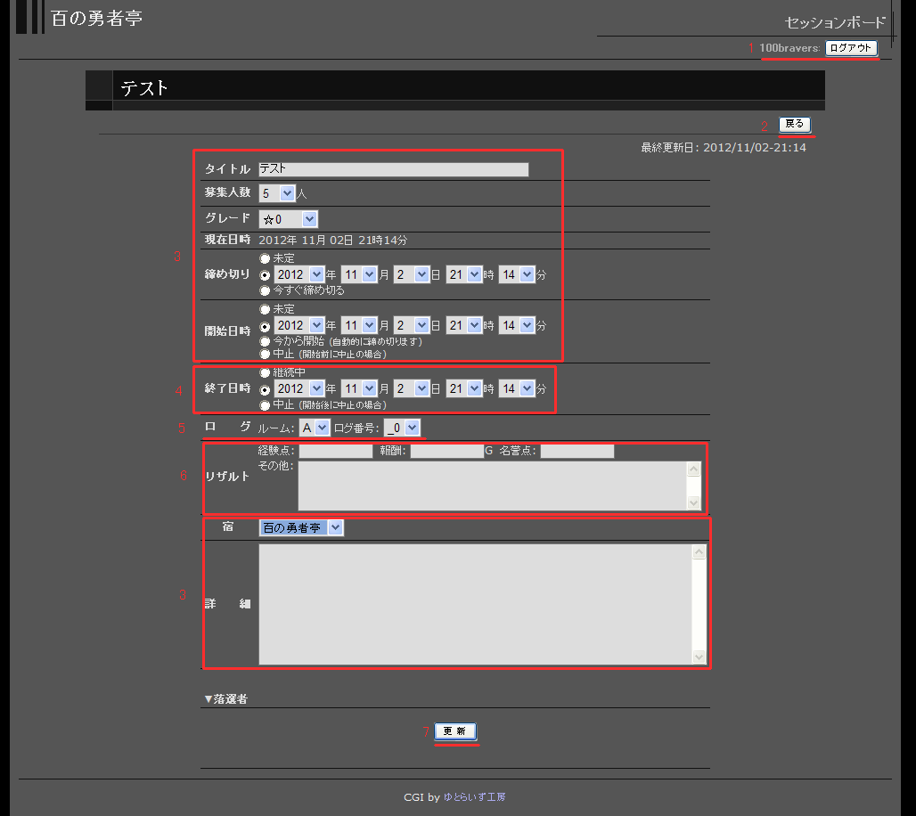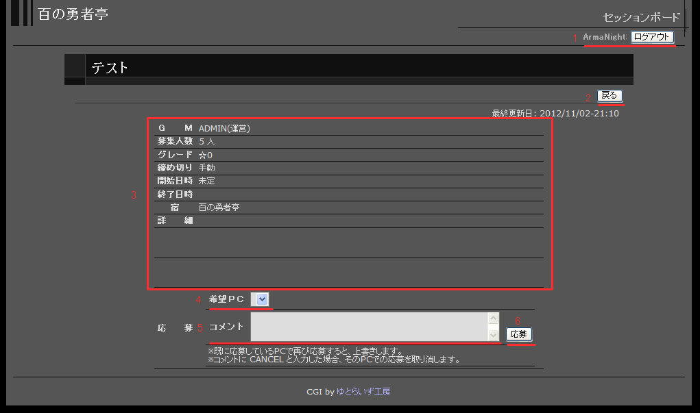 - 希望時のコメントを入力出来ます。GMが抽選する際の指標にするかもしれません。