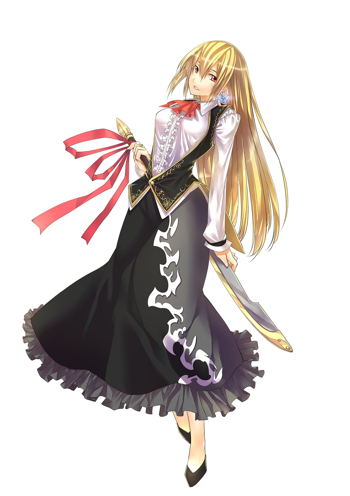 | <容姿> 身長163cm 体重不明 B84(D) W57 H81 (4ゾロでB成長) 金髪のロング。腰まで届く長さ。瞳は赤 私服設定;上:白のワイシャツ+黒のブラウス 赤いスカーフタイをつけている 下:黒のロングスカート ユーユーさんにキャラ絵を描いていただきました。ありがとうございます! 一人称:私(わたくし) 他人称:あなた、~、バルド パーソナルカラー(名前色):金or黒 百の勇者亭103号室宿泊中 家は質実剛健だったが、アミは綺麗な物が好きであり芸術なども好む 闇妖精との親和性が特に高い 酒の強さロール:8 契約宝石