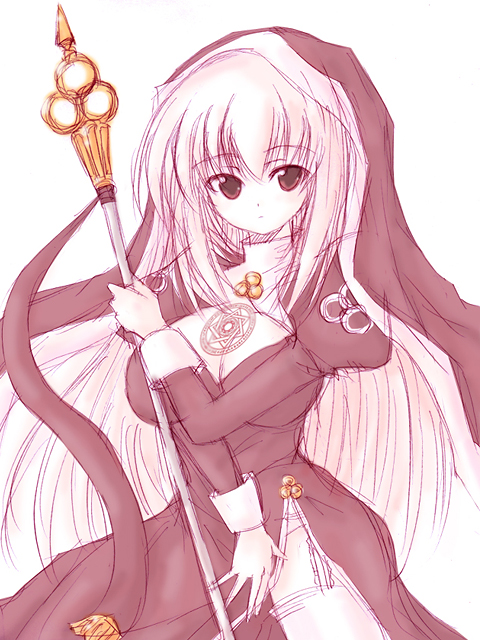 | <背景> ・魔法文明時代の遺跡から発見され、ライフォス神殿に引き取られたハイマンの少女。 ・魔力増幅のための魔法陣は胸元にあり、魔法の行使時に胴体全体が発光する様に見えるため リュミエール、すなわち、光と名付けられる事となった。 ・蛮族勢に立ち向かう神官戦士達を率いる象徴となるため養育されたものの、信仰心は薄い。 ・そもそも神よりも、神に力を与えたはじまりの剣の方が偉い!と考えるルミエルの信徒。 反面、はじまりの剣をゲットする事で神、すなわち永遠の存在になったライフォス神を羨ましく思い 自分もはじまりの剣より神性を獲得し、早逝の運命を覆したいと願う。 ・また信仰心が無くとも神聖魔法が使える事、信仰よりも闘争が神官を成長させる事、に疑念を抱き 信仰という欺瞞を暴き、人と神を結ぶ契約のシステムを紐解きたい、と考える。 ・まずは闘争の中に身を置くため、冒険者になる事を決意した。 <容姿> ・長い白髪はお尻に届く。目は赤。色素が薄いのはハイマンゆえ。 ・胸元の大きく開いた白赤の神官衣に身を包み、頭には同色のヴェールを被る。 露出した胸元には、ハイマン特有の魔法陣。 ・身長156cmと小柄ながらスタイルは良く、頭身高め。 ・うさぱん。 <性格> ・はじまりの剣に憧れる、ある種の原理主義者。 そのため神官ながら信仰心は薄く、薄さは言動の中にほいほい表れる。 ・そもそも神は妖精と同様の、契約の対象だとする思想の持ち主。 ・世界の原初、すなわち神紀元文明に興味が強く、ゆえにタビット族にも興味津々。 それが高じ(拗らせ)ウサギ自体も好きに。ウサグッズに目が無くなった。 ・図太く物怖じしないマイペースな性格。しかしテンションはロー気味。 ・身体は病弱。こほこほ咳こむ。 ・ますのー。 <経歴> ・規律に厳しい環境で育った ・はじまりの剣を求める ・特定の異種族を好む <MEMO> 名前色:rose / powder pink 1ゾロ:1回 予定:神6(☆2)→軍3→軍4→神7(☆3)→賢4→神8(☆4)→賢5→練1→練2→神9(☆5)→ 練3→練4→練5→神10(☆6)→賢6→軍5→賢7→神11(☆7)→賢8→軍6→神12(☆8) (トリプル軽減軍師神官、抵抗系オンリー) 特技:⑦習熟Ⅱ/杖→⑨足さばき 鼓咆:智略→堅陣→安精→強身→心清→剛体→清涼→克己 練技:血→体→精→蟲→智 買物:ブラックスタッフ、聖王の冠、女神のヴェール、戦旗槍(名誉100)、ポンホル、マナコートプラス等 能力:知力>精神>生命、敏捷>筋力>器用 筋力は18止め |