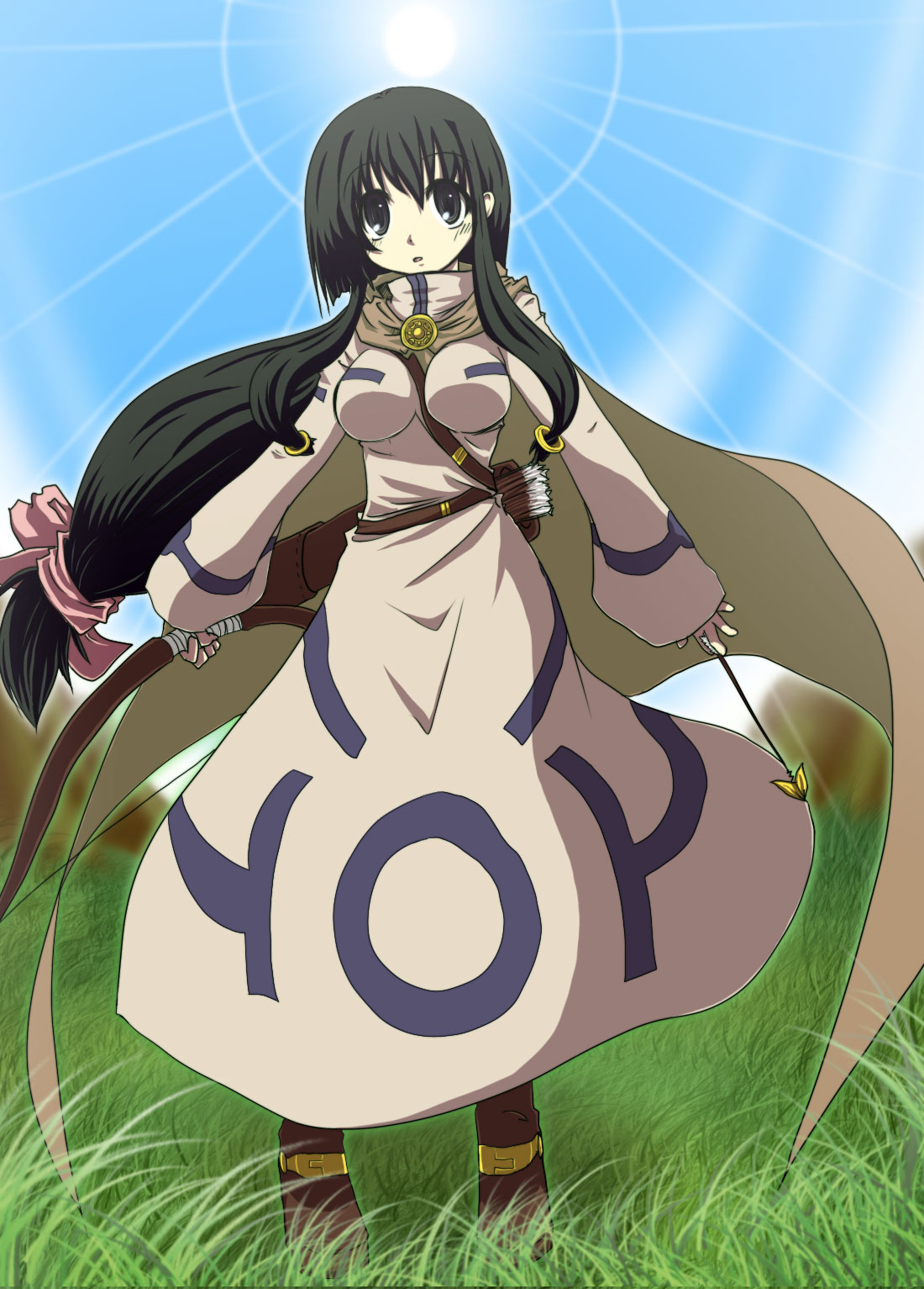 | 【容姿】 ・身長:155cm ・体重:秘密 ・瞳:漆黒 ・髪の色:漆黒 ・文字色:herbe 漆黒の腰まである長髪を一つに束ねている。 体つきは女性特有の丸みを帯びたやわらかいもの。 【性格】 おとなしく控え目で人見知りする性格。光と豊穣を司る太陽神ティダンの使徒として、人々へ慈愛を与えようと努めている。かの神への信仰は厚く、それを他人に強制することはないが、その加護を皆に知ってほしいと少々考えている。逆に不死神やアンデッドに対しては過去のことから深い憎しみを抱いている。 【生い立ち】 ・光と豊穣をつかさどる太陽神を信仰するラ・ルメイア王国にて、敬虔なティダン神の神官である父親と母親の間に彼女は生を受けた。 ・父からは信仰を、母からは弓を扱う術と薬草や毒草の知識を授かった。 ・幸せな日々は終わりを告げ、母は死に、その数日後、父親は人々を殺し母の遺体と共に姿を消した。 ・自らの存在の罪深さに耐えきれず、死を願ったその時、彼女はあたたかい主の光に救われた。 ・彼女は太陽神の使徒のひとりとして穢れた不死神に屈した父親を救うことを心に決めた、たとえその先に何が待ち受けようとも。それが、彼女がなさなければならないこと。 【経歴】 ・父親が旅に出ている:あの日父は姿を消した。母の亡骸と共に、不死神に心を奪われた穢れた使徒となって、彼女のそばから姿を消した。 ・毒を飲んだことがある:父母を失った後、自らの存在の罪深さに耐えきれず、世界から消え去りたいと願った。 【現在】 冒険者として仕事をする傍ら、神殿にも足を運び、祈りをささげ、時には仕事の手伝いも行っている。 一途に主を信仰し、また、人々に対してあたたかな笑顔を向けるその姿から、太陽の聖女と呼ばれるようになり、その名もじょじょにではあるが、人々の間に広まりつつある。しかし、本人は自分はただの一介の主を信ずる者であると思っている。 そのため、実力はあるが、高位司祭への誘いなどは分不相応であると丁重にやんわりと断り続けている。 冒険をするうちに、主とは道を示すものであるがそれを選択するのは人自身であると思うようになる。 同時に、自らが持つ主の癒しの力をもって、皆を守るのではなく「支えよう」と心に決めている。 恋人であるアルナスに対しては、「聖女」ではなく「マリエス」という一人の少女として深い愛情を持つと同時に、そばにいたいという願いをもつようにもなる。 しかし、その性格ゆえか自らの気持ちを表すことをわがままであると恥じる傾向があり、まだ色々とはっきりとは告げることができていない。 里帰りの最中、ラ・ルメイア国王ヴァレリオからの依頼にて、父親に関して新しい情報を得ることになる。 しかし、自らの父親が犯した罪を改めて思い知り、そのことはまた彼女の中で新たな傷として残っている。 機竜の討伐依頼の際、力及ばず、大切な人々を失った。自らの心を保つために心と感情を閉ざし、そして………決着がついたのち、彼女は………店主にだけ、その意を伝え、いづこかへ姿を消した。 いくつかの村や街を回ったが、有力な情報は得られず、かつ、大切な人が残したノワールの様子が近頃妙に落ち着きがないとバルドから聞きつけ、一時オルレイアへと帰還した。 【人物関係】 アルナスさん:剣を扱う戦士であり、私のとても……大切な方です。そして、私が……生涯愛した、ただ一人の男性です。 アイネさん:信頼している女性です。時折自分を大切になさらないのが心配です。あと煙草も心配です。 アルバレストさん:とてもまっすぐな剣をふるう方です。ある意味…一番強い戦士さんだと思います。 アルセリスさん:拳法家の女性です。しかし、あ、あのようなものを読むのは少々…(赤面) オニキスさん:強力な妖精魔法を操る女性です。アルバレストさんの大切な方です。 カミーユさん:同じ主を信じる、エクソシストの方です。しかし、どこかで出会ったことがあるような・・・? キャサリンさん:冷静な判断がくだせ、魔法と剣を扱う女性です。あこがれます。 スノウさん:優しく周りの方をあたたかくしてくださる素敵な女性です。ローさんという大切な方がいます。 ディクタートさん:とても背が高い神官の方です。神は違えどその姿勢を見習いたいものです。 ホーラさん:あの方がいると自然に周囲が笑顔になる、面白い方です。 マルジャーンさん:優しくあたたかい印象があります。しっかりとした芯を持った女性です。 ミリィさん:小柄な方ですが皆さんを守るために一生懸命なザイア様の騎士様です。 ユヱさん:とてもかわいらしい眼鏡をかけたグラスランナーの女性です。いつも箒に乗っています。 ライルさん:女性に対してとても紳士的な方です。 ランツさん:斧を扱うとても強く、しっかり者の戦士さんです。ミルちゃんというお子様がいます。 リーゼロッテさん:強力な真語魔法を操る女性です。遺跡探索などにも積極的で、研究熱心な女性です。 ルーさん:大切な